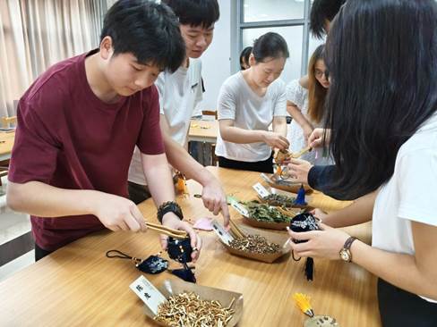 活动尾声,“巧手传香韵”中药香囊DIY环节别出心裁。在艾草、陈皮、薰衣草的清雅药香中,师生穿针引线制作专属香囊。书卷气与草木香交融,手工实践似“深度工作”,协作交流如“非暴力沟通”,为活动画下芬芳静谧的句点。
