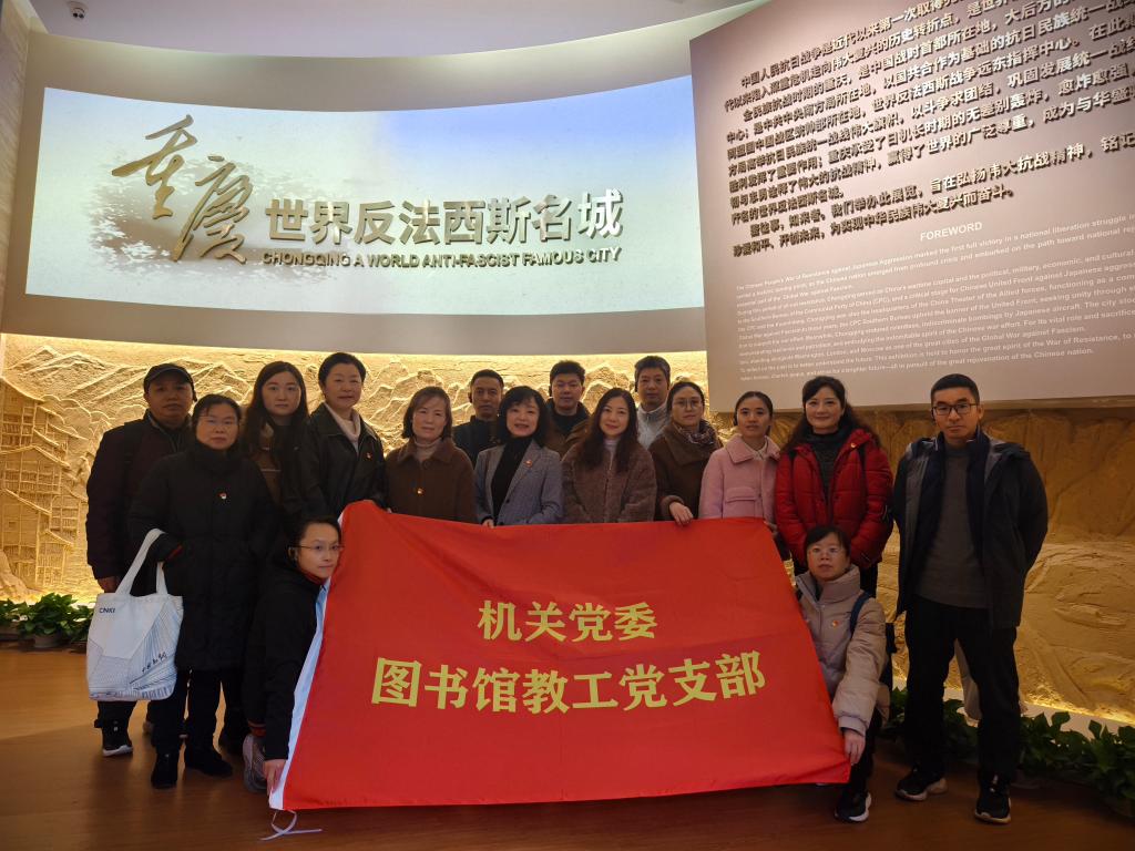 为纪念中国人民抗日战争暨世界反法西斯战争胜利80周年,弘扬伟大的抗战精神,增强党员的历史责任感和使命命感,2025年12月12日,在国家公祭日前夕,重庆交通大学机关党委图书馆教工党支部组织全体党员前往重庆抗战遗址博物馆开展“铭记抗战历史 传承红色基因”主题党日活动。